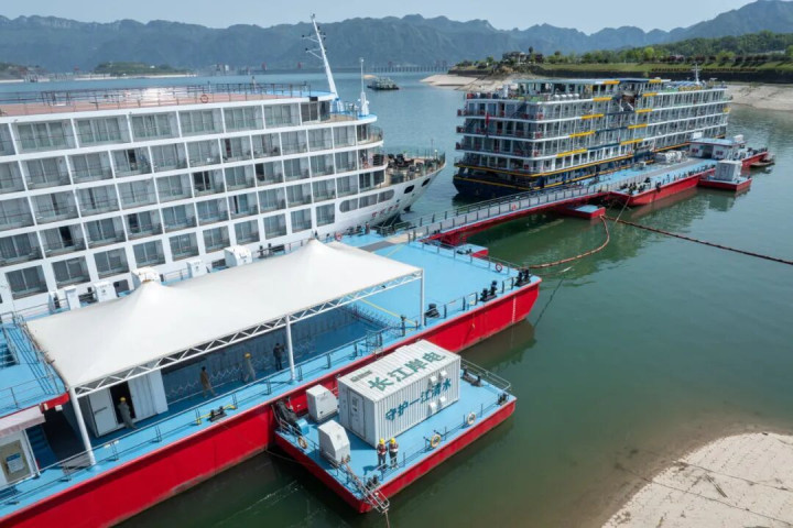 它的“心脏”是12个集装箱式锂电池电源,相当于500辆新能源汽车的电量,可像电动汽车一样实现快速换电。按运营测算,该船每年可替代燃油约617.5吨,减少二氧化碳排放约2052吨。